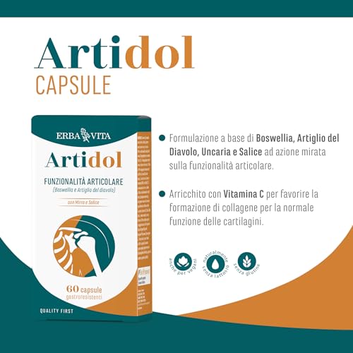 ERBA VITA Artidol 60 Capsule integratore alimentare a base di Boswellia e Artiglio del Diavolo, per un'azione mirata sulla funzionalità articolare