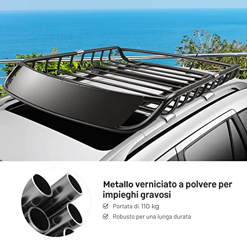 COSTWAY Portapacchi da Tetto Universale, Bagagliera Portabagagli Auto Tetto Portata 110kg, Nero, 120 X 98 X 16,5 cm (Nero, stile 1)