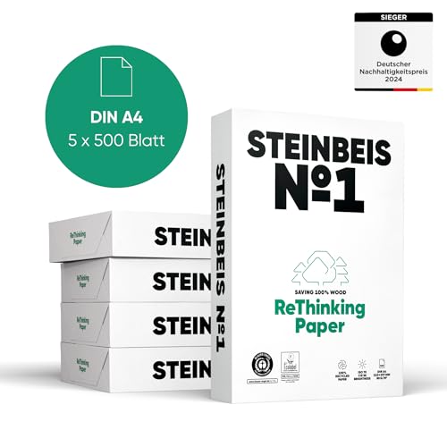 Steinbeis No. 1 carta per stampante – 2500 (5 x 500) fogli DIN A4 da 80 g/m², bianco e senza cloro, carta per fotocopiatrici di alta qualità ISO 70/CIE 55