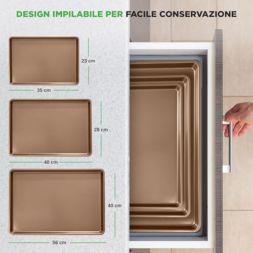 NutriChef Set 3 Teglie da Forno Antiaderenti in Acciaio al Carbonio - Inclu kZLT
