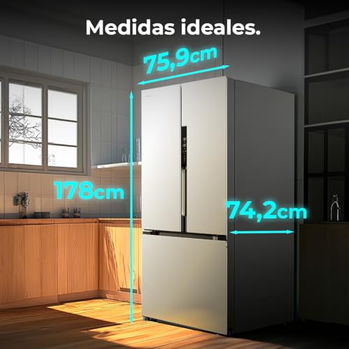 Cecotec Frigorifero Porta Francese Bolero CoolMarket FD 499 Inox E. Compressore Inverter Plus, Porta Francese Inox 178X75.9Cm, 499L, No Frost, Classe Energetica E, Multiairflow, Metal Cooling