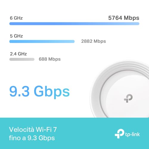 TP-Link WiFi 7 Deco BE65 Router Mesh, BE 9214Mbps Tri-Band, Canali 320 MHz, Porta Ethernet da 2,5 Gbps, Ripetitore, Senza Precedenti, Alexa, HomeShield, Funziona con Qualsiasi ISP e Modem, 1 Pezzo