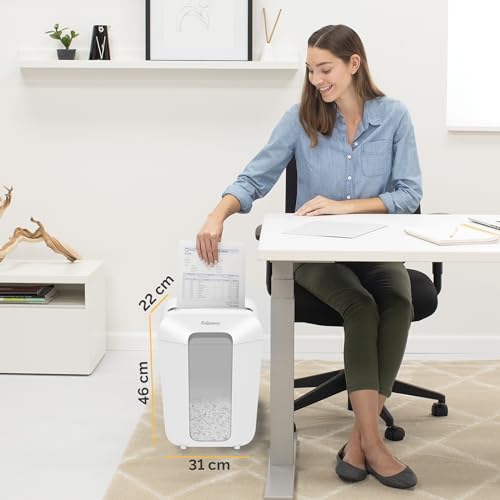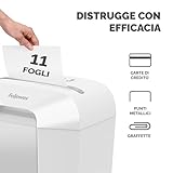 Fellowes distruggi documenti a frammento LX70, 11 fogli, per casa e piccolo ufficio, uso personale, cestino da 18 litri, distruggidocumenti con blocco di sicurezza, bianco