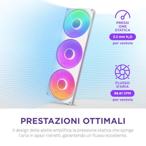 NZXT F420 RGB Core - Unità Ventola a Singolo Telaio da 420mm con 3 Ventole RGB da 140mm - Controllo Velocità e Illuminazione - Alta Pressione Statica e Flusso d'Aria - Bianco