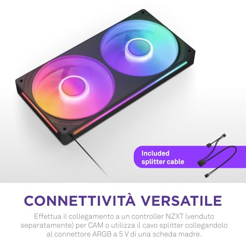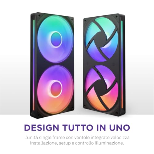 NZXT F240 RGB Core - Telaio singolo 240 mm con 2 ventole RGB 120 mm - Controllo velocità illuminazione - Alta pressione statica e flusso d'aria - Cuscinetti fluidodinamici - 8 LED aRGB - Nero