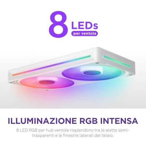 NZXT F240 RGB Core - Telaio singolo 240 mm con 2 ventole RGB 120 mm - Controllo velocità illuminazione - Alta pressione statica e flusso d'aria - Cuscinetti fluidodinamici - 8 LED aRGB - Bianco