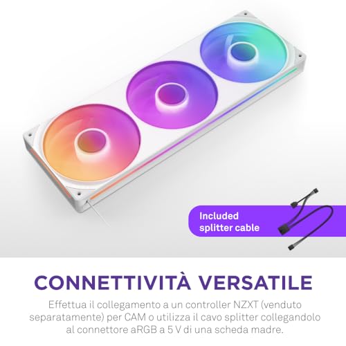 NZXT F360 RGB Core - Telaio singolo 360 mm con 3 ventole RGB 120 mm - Controllo velocità illuminazione - Alta pressione statica e flusso d'aria - Cuscinetti fluidodinamici - 8 LED aRGB - Bianco