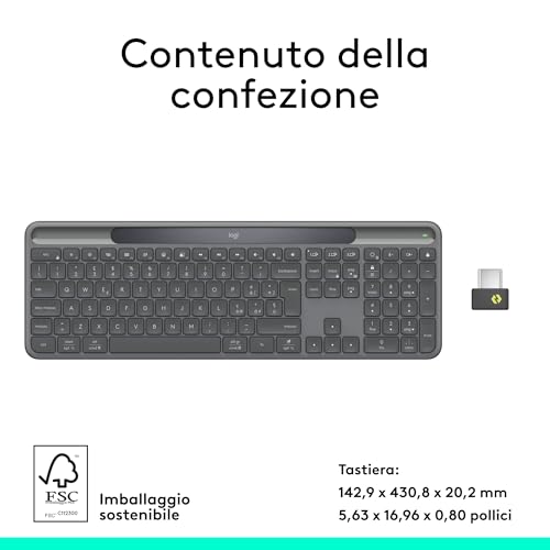 Logitech 920-013776, RF senza fili + Bluetooth, Grafite (Italiano, Senza fili), Tastiera, Grigio