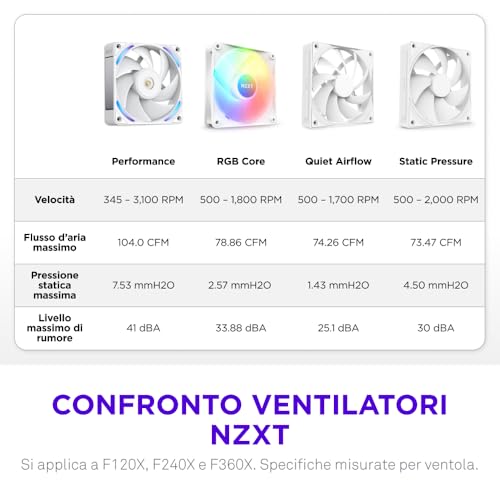 NZXT F360X Ventola Performance Telaio Singolo - 3x 120mm PWM RGB PC - Flusso aria & pressione max - Basso rumore - Telaio & pale LCP - Cuscinetto magnetico fluido - Spessore 30mm - Bianco