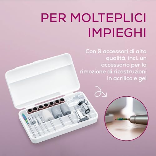 Beurer MP 200 Studio Nails Pro – Fresa per Unghie Professionale 3 in 1 con Lampada UV/LED, Lima per Unghie Elettrica per gel e acrilico, Pedicure Elettrico e Set Manicure con 9 accessori