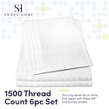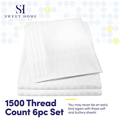 Set di lenzuola a strisce per letto matrimoniale, 6 pezzi, collezione Supreme 1500, in microfibra spazzolata, con tasca profonda, 2 federe extra, per letto matrimoniale, colore: bianco