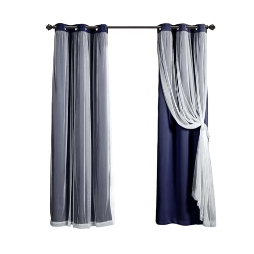 Lush Decor Tende a pannello con occhielli trasparenti con fodera oscurante isolante, set di tende per finestra oscuranti (coppia), 96,5 cm di larghezza x 160 cm di lunghezza, blu navy