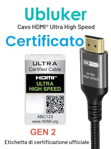 Ubluker 10K 8K 4K Cavo HDMI 48Gbps 3M Certificato Velocità Ultra Elevata HDMI...