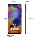 Samsung Galaxy A31, Smartphone, Display 6.4” Full HD+ Super AMOLED, 4 Fotocamere Posteriori, 64 GB Espandibili, RAM 4 GB, Batteria 5000 mAh, 4G, Dual Sim, Android 10, 185 g, [Versione Italiana], Blu