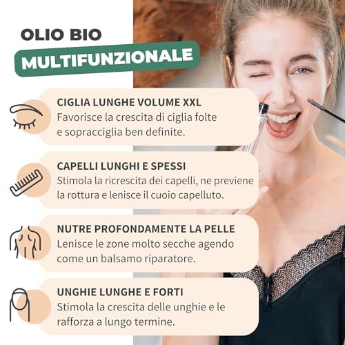 Olio di ricino biologico Bionoble - 100% puro, naturale e spremuto a freddo + pompa + kit mascara
