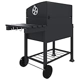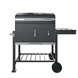 BRICOZONE Barbecue A Carbone In Acciaio Con Termometro Integrato Griglia Regolabile In Altezza Ripiano Laterale Pieghevole Ruote E Cassetto Cenere Ampia Superficie Di Cottura Per Giardino E Terrazzo