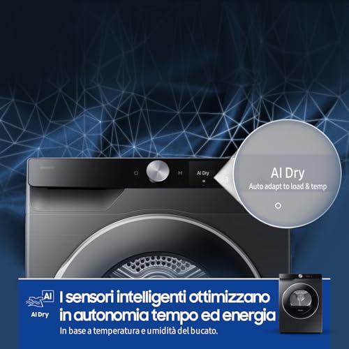 Samsung Asciugatrice DV90DG6845LBU3, a condensazione, 9 Kg, profondità 60 cm, tecnologia AI Dry, funzione Super Speed 81’, Classe A