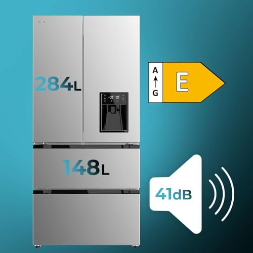 Cecotec Frigorifero Porta Francese Bolero CoolMarket FD 436 WD Inox E. 436L, Dispenser Acqua, Inverter Plus, No Frost, Multi Airflow, Fast Cooling/Freezing, Classe E, Metal Cooling, 83,6x63,6x183 cm