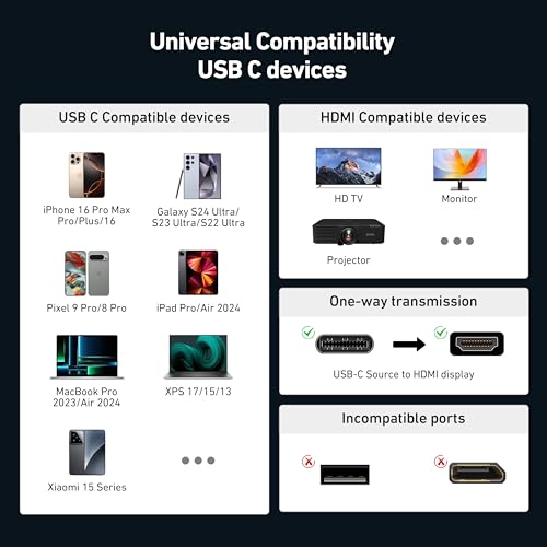 BENFEI Adattatore USB C a HDMI 2.1 8K@60Hz/4K@240Hz [Guscio in alluminio, Nylon intrecciato] Compatibile con iPhone 15/16 Pro/Max, MacBook Pro/Air 2023, iPad Pro, Surface Book 2 Altro