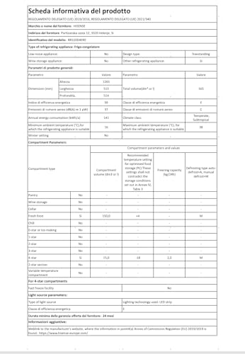 Hisense RR220D4ERE, FRIGO MONOPORTA, Classe E