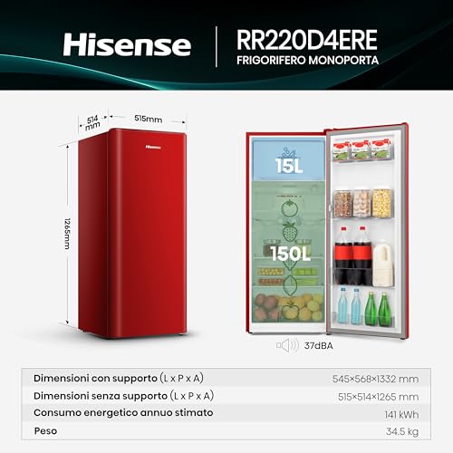 Hisense Frigorifero 1 Porta Rr220d4ere Classe E 165 Lt-rosso