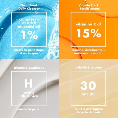 e.l.f. SKIN Wake the e.l.f. Up Skincare Kit, detergente viso idratante, protezione solare, idratante e siero illuminante in formato viaggio, prodotti vegani e non testati sugli animali