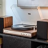 Crosley Giradischi C65 con altoparlanti, giradischi Bluetooth con altoparlanti da scaffale da 50 W, lettore in vinile facile da installare con copertura antipolvere, sistema di scaffali per giradischi